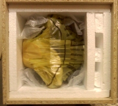 Ich habe 2 kleine Holzkisten gebaut und mit Styropor innen verkleidet. Da rein paarweise die Chassis, verschraubt mit Abstandshalter. So empfielt es auch Klangmeister (siehe website). Die 2 Kisten (vielleicht 5 EUR Zuschnitt im Baumarkt) in einen gepolsterten Karton und ab.