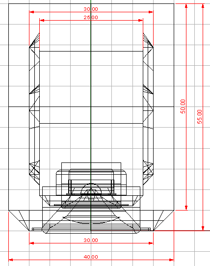 ich bin von der 2x 25mm Materialstärke auf beiden Seiten ausgegangen, bei Draufsicht fehlt der endgültigen Front 2x 5 cm.