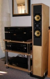 Genervt von der ewigen"Umlöterei",habe ich mir eine gebrauchte Accuphase F-25 Aktivweiche gekauft.Diese möchte ich nach Fertigstellung der Box,mit Messequipement einpegeln lassen,um eine Basis zum"Rumspielen"zu haben.Als Trennfrequenz-Module,stehen zur Verfügung:5000 und 4000Hz/350,300 und250Hz.Die Chassis sind von Scan Speak und zwar HT:Ringradiator(siehe neue K+T S.10),2xMT:15er Revelator,2xTT:18er Revelator in D´Appolito-Anordnung.MT um 6 Grad angewinkelt,HT ca. 2cm zurückversetzt.