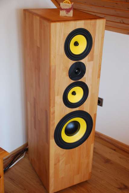 Bedenken wegen Voll-Echtholzkisten wurden hier ja schon genügend geäußert (teile ich absolut!) deshalb denke mal über Manfreds Vorschlag nach, MDF mit Echtholz zu kombinieren. Hat den klaren Vorteil, dass die dann relativ dünne Echtholzschicht auf dem dicken MDF Trägermaterial nicht die Kräfte entwickeln kann, wie dickes Vollholz. Wär doch schade um die ganze Arbeit, wenn die Kisten Risse bekommen, oder? Außerdem bietet sich diese Variante bestens an um den Edel-Look aus Hochglanz-Echtholz-Gehäuse und Color-Front zu realisieren. Im Falle, des Falles, hat so eine Kiste auch deutlich mehr WAF