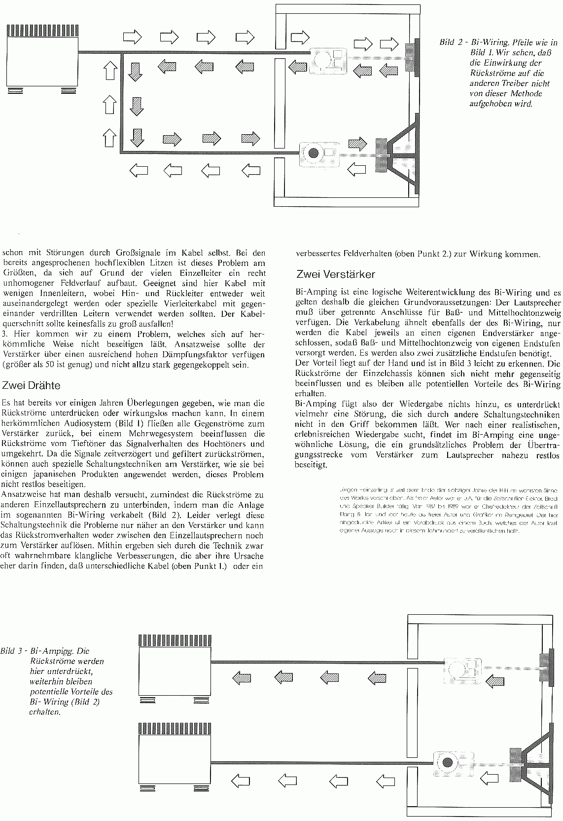 Der (leider verstorbene) J.Heinzerling hat in unsrem LECSON Prospekt die Vor und Nachteile von Bi-amping und Bi-Wiring schön erklärt!